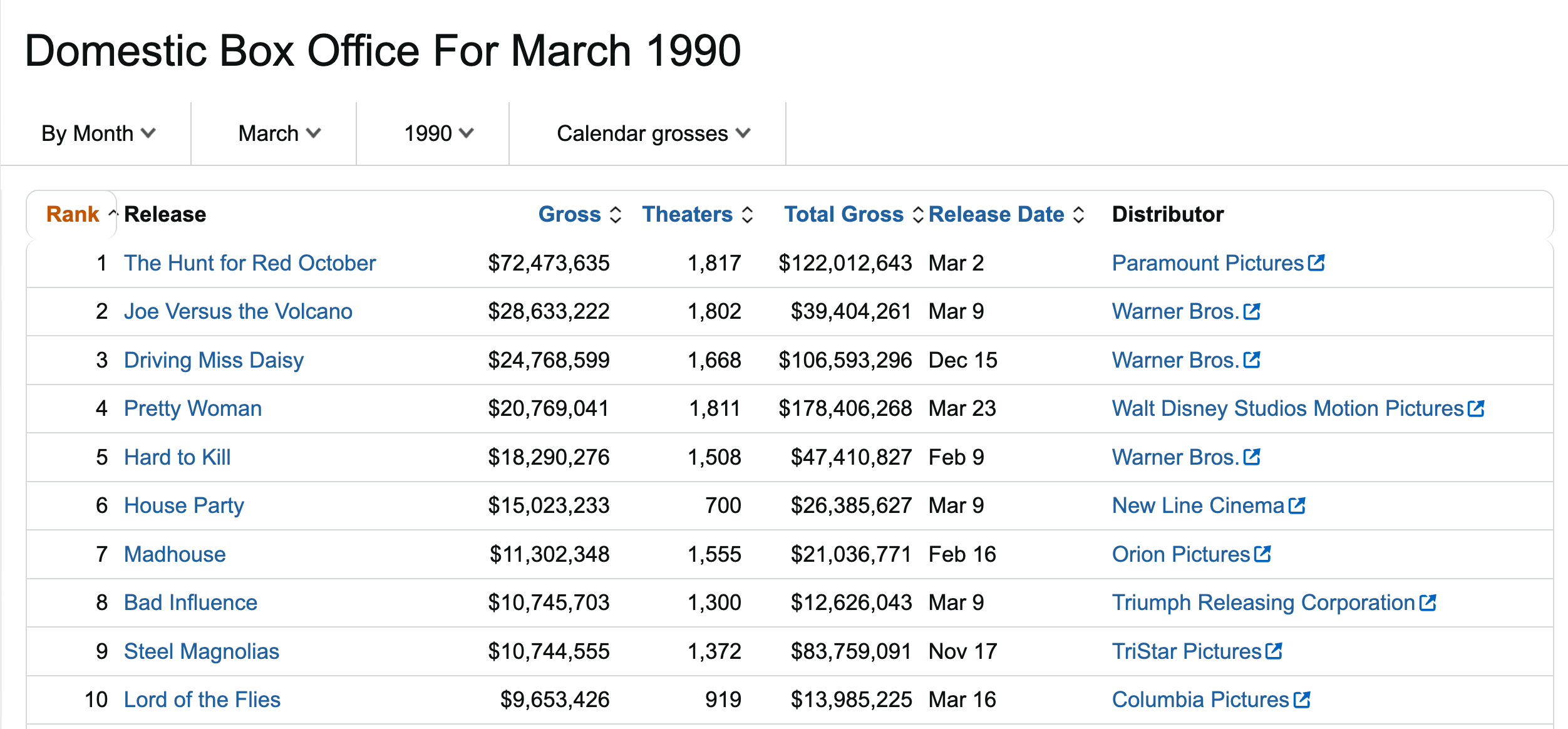 And yet … audiences mostly missed Bad Influence when it came out. Maybe they forgot to put plans to see the movie in their Filofaxes. Or maybe they were too busy seeing something else. The month Bad Influence was released there was some heavy competition at the box office. (Note: Movies actually stayed in theaters for weeks, even months, back then so the below list is a sampling of what you could’ve seen in March of 1990, not the opening weekend competition).